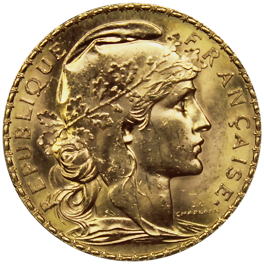 En 1914, Jules-Clément Chaplain gravera la dernière pièce en Or française du système germinal mise en circulation, à savoir le Coq Marianne. Mais celle-ci ne servira pas de pièce à contrario des Napoléon précédent, elle sera utilisée uniquement pour l'investissement.